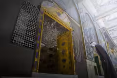 احد الزائرين يلقي التحية على المولى قمر بني هاشم عليه السلام، 25 شوال 1441 هـ / 2020 م، كربلاء المقدسة ،العراق.