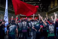 مواكب العزاء في اربعينية الامام الحسين (عليه السلام) ، 18 صفر 1442 هـ / 2020 م ، كربلاء ، العراق .