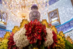 أكاليلُ زهور شعبان تعانق الشبّاك الطاهر ، 29 رجب 1442 هـ / 2021 م، كربلاء المقدسة ، العراق.