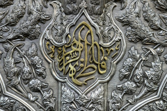 فاطمة الزهراء جزه من الشباك الطاهر لابي عبد الله الحسين ع مكتوب عليه فاطمة الزهراء ع وتظهر النقوش ايضآ التي نقشت على ايدي امهر النقاشين في العالم ١ ذو الحجة ١٤٤٤ هـ - ٢٠ حزيران ٢٠٢٣ م. كربلاء ، العراق .