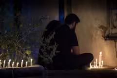 ليلة الوحشة يحي الزائرين من كل سنة ليلة الحادي عشر من المحرم الحرام بالحزن والبكاء وايقاد الشموع، صورة تظهر عائلة حسينية توقد الشموع في ليلة الحادي عشر، ليلة الوحشة ١٠ محرم ١٤٤٥ هـ - ٢٩ تموز ٢٠٢٣ م كربلاء المقدسة ، العراق