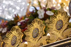 تفصل بين قنديلٍ وآخر زهرةُ اللوتس، حيث يبلغ عددُ هذه الزهور (30) زهرة وهي مصنّعة أيضاً من النحاس ومطليّةٌ بالذهب، ويبلغ ارتفاعُها (15سم) عند أعلى نقطة.