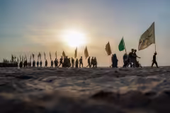 تاركين بيوتهم واعمالهم وعازمين على السفر بحب الحسين واهل بيته الاطهار (عليهم السلام) ٥ صفر ١٤٤٦ هـ / ١٠ آب ٢٠٢٤ م . البصرة، العراق .