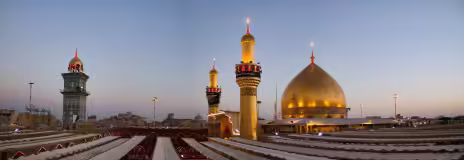 A panoramic view of the dome and minarets of the shrine of Imam Ali (peace be upon him). Najaf, IRAQ