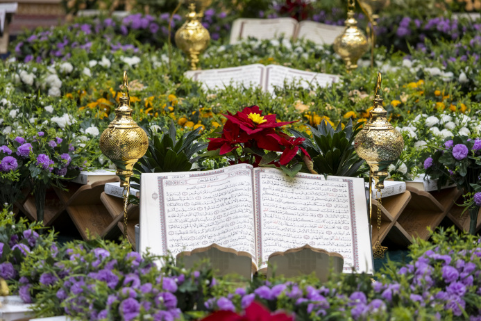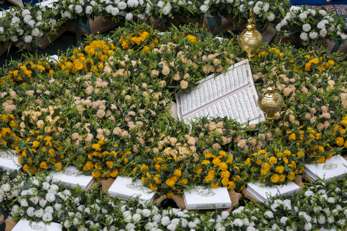 كُلُ تفصيلةٍ هُنا تُسَبّحُ بِحَمدِ الخالق جزة من احد سقوف العتبة المباركة منسق وكأنه باقة ورد روحانية يفيض عطرها ويفوح بين اروقة العتبة المباركة كربلاء المقدسة/العراق