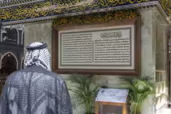 جدارُ الصحنِ شاهد، والرجلُ واقفٌ يتلو، يُعيدُ صياغةَ العهدِ والمحبةِ في كلِ حرفٍ مكتوب كربلاء المقدسة/العراق