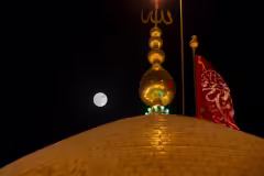 القبة والراية لابي الفضل العباس (عليه السلام) تعلوها كلمة الله عز وجل والقمر المنير في سماء كربلاء ٢٥ ربيع الآخر ١٤٤٧هـ كربلاء المقدسة/العراق