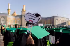 إِحْدَى اَلْخِرِّيجَاتِ اَلْمُشَارِكَاتِ فِي حَفْلِ بَنَاتِ اَلْكَفِيلِ اَلتَّاسِعِ لِلْجَامِعَاتِ اَلْعِرَاقِيَّةِ وَالدُّوَلِ اَلْإِسْلَامِيَّةِ تَخْتَتِمُ تَخَرُّجَهَا عِنْدَ مَرْقَدِ أَبِي اَلْفَضْلْ اَلْعَبَّاسْ (عَلَيْهِ اَلسَّلَامُ) بِكُلِّ فَرَحِ وسَرُورْ كَرْبَلَاءْ اَلْمُقَدَّسَةَ/ اَلْعِرَاقُ