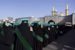 المشاركات في حفل بنات الكفيل التاسع للجامعات العراقية والدول الإسلامية يؤدّين القسم عند مرقد أبي الفضل العباس (عليه السلام) كربلاء المقدسة/العراق