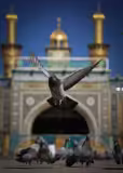 أسرابٌ من الطيور، تتخذُ من بابِ قبلةِ الكفيلِ ملاذاً، وكأنها تؤدي تحيةَ الصباحِ والسلامَ على صاحبِ الجود كربلاء المقدسة/العراق