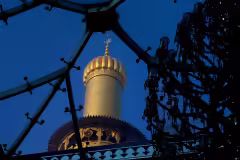 من علوِ المشهد، تبدو المنارةُ المُزخرفةُ كنصلٍ ذهبيٍ حاد، يخترقُ السقفَ الزجاجيَ الشاسع، في تباينٍ بصريٍ بين شفافيةِ الزجاجِ ومهابةِ البناء، ليمنحَ الصحنَ إطلالةً لا تُنسى كربلاء المقدسة / العراق