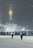 صحنُ الإمام الرضا (عليه السلام) يتوشّح بالبياض مع تساقط الثلوج، في مشهدٍ يفيض سكينةً وجمالًا وروحانيةً نادرة مشهد/العتبة الرضوية المقدسة