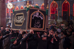 يُحملُ النعشُ الرمزيُّ للإمامِ الهادي (عليه السلام) على أكتافِ المفجوعين، يطوفُ بينَ الجموعِ كـَ منارةِ حزنٍ، وسطَ هتافاتِ الولاءِ ودموعِ الأسى على غريبِ سامراء كربلاء المقدسة/العراق