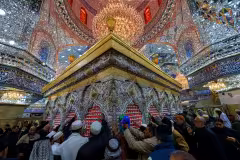 جموع من الزائرين يلتفون حول شباك أبي عبد الله الحسين(عليه السلام)، تتعانق يديهم بالدعاء والخشوع، وتغمر المكان روح الإيمان والوفاء، فتتحول اللحظة إلى موجة صامتة من الحب والولاء كربلاء المقدسة / العراق