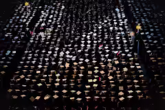 صورة جوية تظهر احتشاد طالبات الكفيل أمام باب القبلة لحضرة أبي الفضل العباس (عليه السلام)، بتنسيق منظم يعكس الانضباط وروح الانتماء والهيبة كربلاء المقدسة / العراق