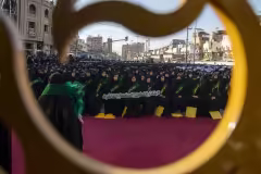بحرٌ من السواد يفيض نوراً وعلماً.. مشهد يختصر حكاية النجاح تحت رعاية العتبة العباسية المقدسة المكان:باب قبلة ابي الفضل العباس (عليه السلام) حفل تخرج بنات الكفيل العاشر كربلاء المقدسة/العراق