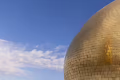 نصفُ قبةِ أبي الفضل العباس يظهر في صورةٍ قريبة، تتلألأ زخارفه الذهبية وتبرز تفاصيله الدقيقة، مشعًّا بالهيبة والروحانية كربلاء المقدسة / العراق