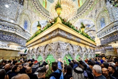 يزدانُ شباكُ أبي عبد اللهِ الحسينِ (عليه السلام) بـِ باقاتِ الورودِ الزاهية ابتهاجاً بـِ ولادةِ أبيهِ الإمامِ عليٍّ (عليه السلام)، وتلتفُّ حولَهُ حشودُ الزائرينَ المُهنّئين، في مزيجٍ فريدٍ من الفرحِ والولاءِ كربلاء المقدسة/العراق