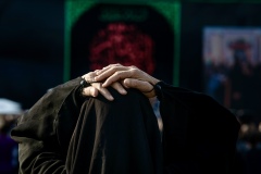بـِ يدٍ ترتجفُ وعينٍ دامعة، تضعُ المرأةُ كفّها على رأسها، في إشارةٍ صادقةٍ لـِ عظيمِ المصابِ الزينبيّ، وكأنها تُشاركُ العقيلةَ في ألمِها كربلاء المقدسة/العراق