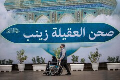 أحدُ خدّام العتبة الحسينية المقدسة يدفع عربةً لزائرةٍ كبيرةٍ في السن، في مشهدٍ إنساني يجسّد الرحمة والخدمة بإخلاص كربلاء المقدسة / العراق