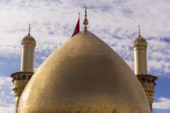 يُهيمنُ المشهدُ المُقربُ على الروحِ بـِ روعةِ القبةِ المُشرقة، وامتدادِ المنارتينِ المُزخرفتَين، والتركيزِ على رفرفةِ الرايةِ الشامخةِ التي تُعلنُ عن عظمةِ صاحبِ المرقدِ بكلِّ وضوح كربلاء المقدسة/العراق