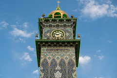 يُطلقُ برجُ الساعةِ نداءَهُ الإيقاعيَّ في سماءِ الحضرةِ، فـَ يُصبحُ كلُّ دقّةِ جرسٍ تذكيراً بـِ بركاتِ الوقتِ المُنقضي في رحابِ صاحبِ اللواء المكان:برج الساعة في الحضرة العباسية المقدسة كربلاء المقدسة/العراق