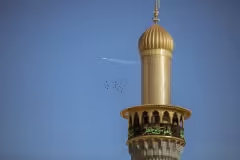 إحدى منائر الكاظمية تقف شامخة بزخارفها المتقنة، تعكس عظمة المكان وقداسته وروحانيته كربلاء المقدسة / العراق