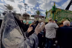 النسوة يشاركن في التشييع الرمزي للإمام الكاظم (عليه السلام)، في مشهدٍ يفيض حزنًا وولاءً ومواساة صادقة كربلاء المقدسة / العراق