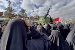 بـِ العباءةِ الزينبيةِ الأصيلة، ترسمُ النسوةُ لوحةً من الوفاءِ خلفَ الجنازةِ الرمزية، لتُعلنَ أنَّ حرارةَ المصابِ في قلوبِ الموالياتِ لا تبردُ بـِ مرورِ الأجيال كربلاء المقدسة/العراق