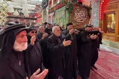 المؤمنين يحملون النعشَ الرمزي للإمام الكاظم (عليه السلام) في حضرة المولى أبي الفضل العباس(عليه السلام)، في أجواءٍ يخيّم عليها الحزن والولاء والخشوع كربلاء المقدسة / العراق
