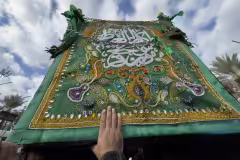 المؤمنين يحملون النعشَ الرمزي للإمام الكاظم (عليه السلام) في حضرة المولى أبي الفضل العباس(عليه السلام)، في أجواءٍ يخيّم عليها الحزن والولاء والخشوع كربلاء المقدسة / العراق