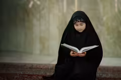 بعباءتها الزينبية وبمصحفها الفاطمي ترسم طريقاً نحو الجنة