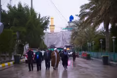 شارع باب قبلة الامام الحسين عليه السلام والعتبة الحسينية المقدسة اثناء هطول أمطار الخير على أرض القداسة. 22/2/2016 م - 13 جمادي الاول 1437هـ كربلاء المقدسة، العراق.