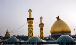 قبة ومنارتي مرقد ابي الفضل العباس عليه السلام وتظهر القباب الجديدة لمشورع التوسعة بعد اكسائها بالكاشي الكربلائي شهر رمضان 1437 هـ - 2016 م كربلاء المقدسة - العراق