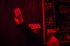 المؤمنين يحيون ليلة القدر في حسينية تاج دار با هو المجاوره لحرم الامام الحسين عليه السلام 1437هـ/2016م. كربلاء المقدسة، العراق.