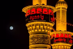 القمر مع مأذنتي أبي الفضل العباس