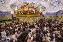 زوار الامام الحسين وأخيه أبي الفضل العباس يحييون الزيارة الشعبانية ، 14 شعبان 1440 هـ / 2019 م ، كربلاء المقدسة ، العراق.