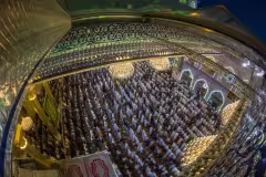 زوار الامام الحسين وأخيه أبي الفضل العباس يحيون الزيارة الشعبانية ، 14 شعبان 1440 هـ / 2019 م ، كربلاء المقدسة ، العراق.